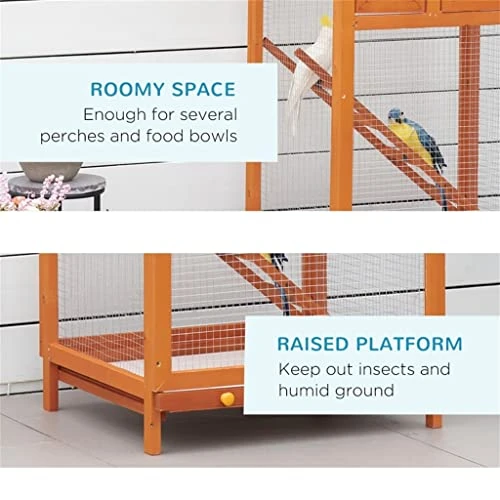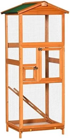 - – EXTRA LARGE: Made to provide a space for a large group of birds, the tall, towering design is complete with large doors. This outdoor bird cage is made of fir wood, sturdy enough for daily use.