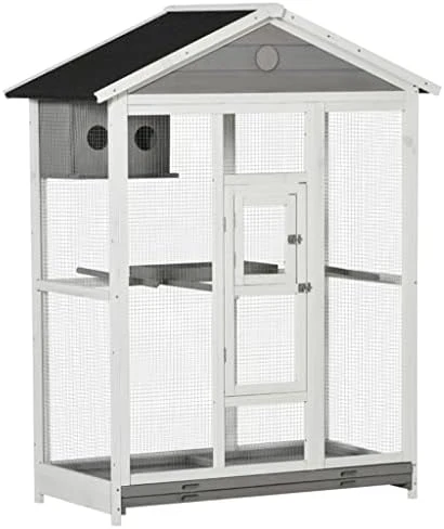 - – INDOOR OR OUTDOOR USE: This wooden bird cage is ideal for either indoor or outdoor use. The water-resistant asphalt roof and finish help protect against light weather conditions.