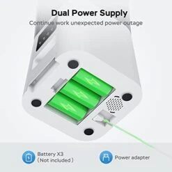 - 【Secured Locking Lid & Dual Power Supply】 Designed with a locking lid that securely keeps the food inside when the automatic cat feeders are knocked off by your pets. You can choose to use the 5V DC adapter or 3 alkaline D-cell batteries (Not Included) for power connection. Recommend to install 3 batteries in case of a sudden power failure, the wifi pet feeder can continue working with batteries.