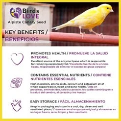 - Healthy Daily Diet: Fill seed cup daily with fresh seed. Our canary seed is loaded with protein, amino acids, potassium, calcium and is an excellent source of the enzyme lipase, which is responsible for removing excess body fat. Alpiste and leche alpiste are superfoods!