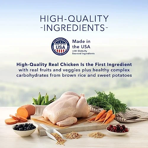 - A NATURAL DOG FOOD: BLUE dry dog food is made with the finest natural ingredients enhanced with vitamins and minerals; BLUE contains NO chicken (or poultry) by-product meals, corn, wheat, soy, artificial flavors or preservatives