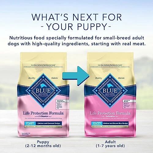 - FOR SMALL BREED PUPPIES: BLUE Life Protection Formula Small Breed Puppy Food supports healthy growth and contains DHA and ARA (important fatty acids found in mother’s milk) to support cognitive function and retinal health