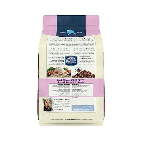 - Contains one (1) 5 lb. Bag of BLUE Life Protection Formula Small Breed Puppy Dry Dog Food, Chicken and Oatmeal
