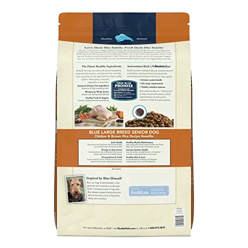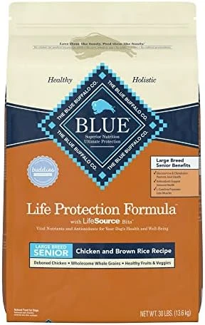 - Contains one (1) 30 lb. Bag of BLUE Life Protection Formula Large Breed Senior Dry Dog Food, Chicken and Brown Rice