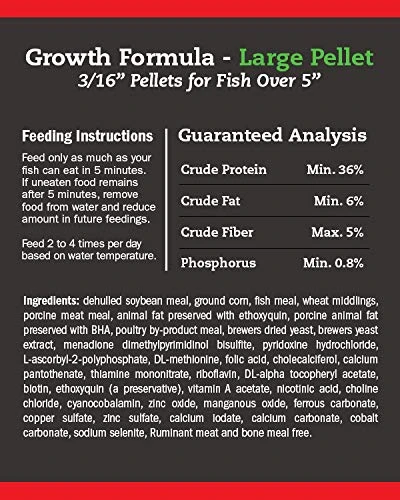 - PERFECT FOR KOI AND GOLDFISH 5 INCHES AND LARGER This food provides a completely balanced nutritional diet that greatly enhances growth in all koi and goldfish