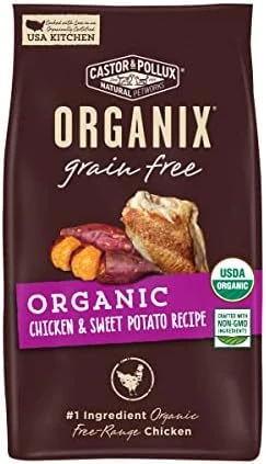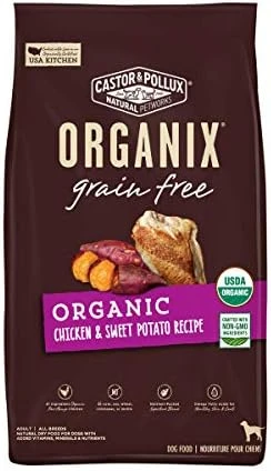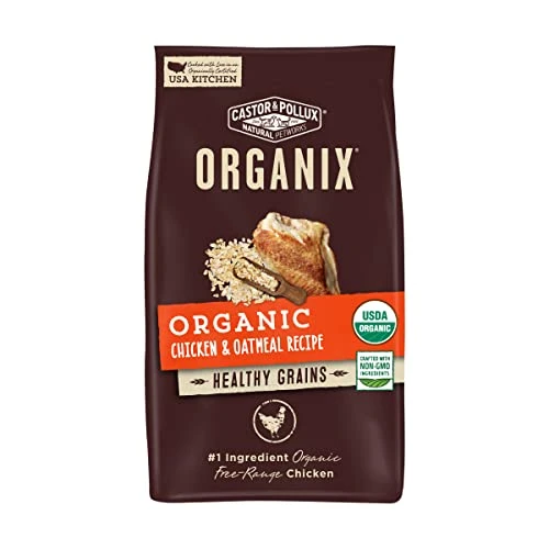 - USDA organic certified dry dog food with grain that is made with organic chicken raised without any added growth hormones or antibiotics