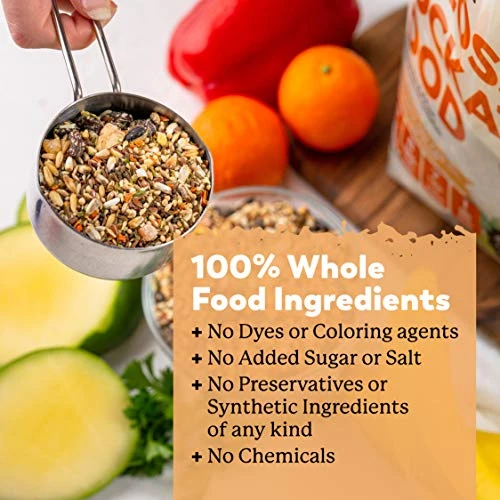 - Packed with a variety of foods that cockatiels need to have a balanced diet, including 9 types of fruits, 9 types of nuts, 8 types of seeds, 7 types of vegetables, and oat groats