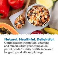- Contains just the right amount of protein, fat, fiber, and moisture for large parrots