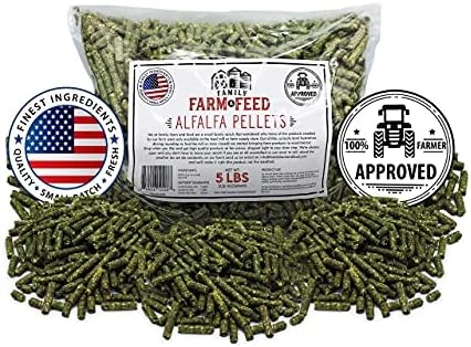 - 🌿 WHAT YOU GET: Clear package of 5 pounds of alfalfa pellets with label