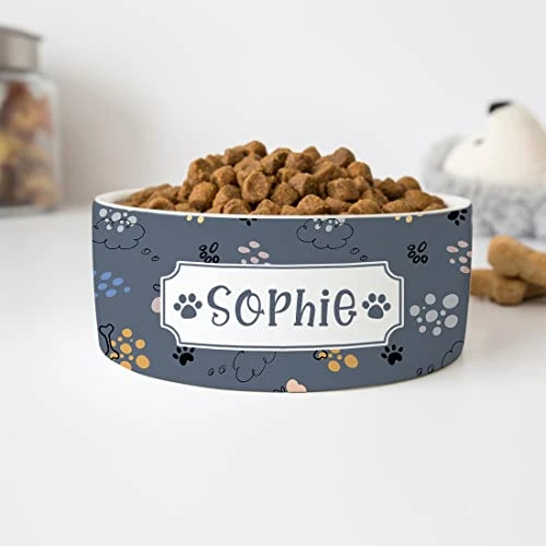GENERIC Personalized Yellow Dog Footprint Pattern Pet Bowl, Dog Name Bowl, Gift For Pets, Ceramic Bowl Available In Two Sizes