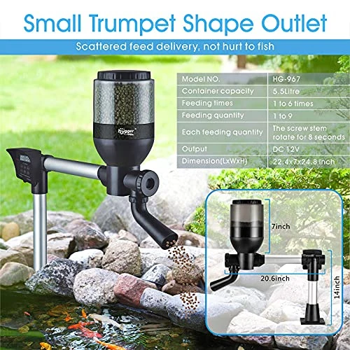 - 【Waterproof Design】the whole feeder includes the food container which is waterproof design, the container with a thick lid is made of durable plastic, it will keep the fish food dry even in a raining days, so you can install the fish feeder by the side of pond outdoors. The controller is not completel waterproof, you may need add a shelter to it all use a plastic bag to cover it. Please don’t submerge the feeder in water and don’t wash the container with water.
