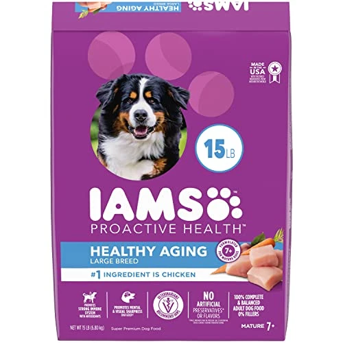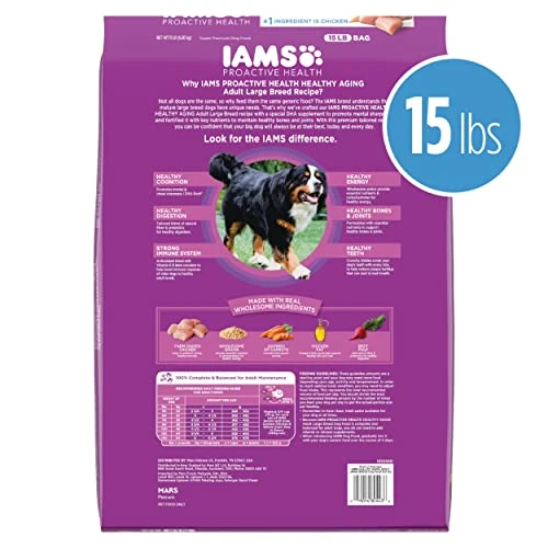 - Contains one (1) 15 lb. bag of IAMS Healthy Aging Adult Large Breed Dry Dog Food for Senior Dogs with Real Chicken
