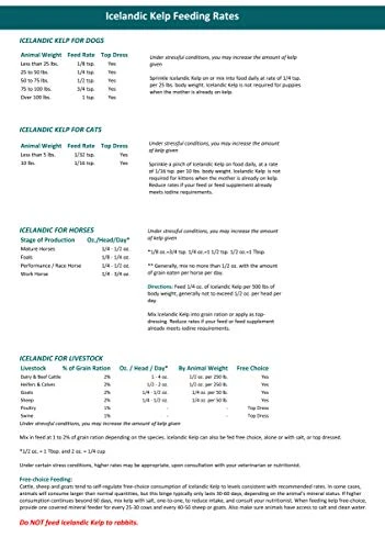 - Do NOT feed to rabbits due to the iodine content. Store in a cool dry place. Do not exceed recommended daily dose. Ingredients: 100% Icelandic Kelp (Ascophyllum nodosum). Available in 2lb. & 6lb. Jars; 5lb., 12.5lb., 25lb., and 50lb. bags.