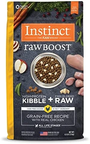 - THE FIRST RAW BOOSTED KIBBLE: Raw Boost mixes high protein, grain free dog food with our freeze dried raw dog food toppers in one bag. Complete & balanced nutrition for all dogs, including small breeds, toy breeds, puppy, senior & healthy weight.