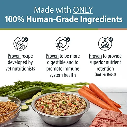 - Ready-to-serve nutrition – Every recipe is formulated by our team of veterinarians and canine specialists, and then gently cooked to maximize nutritional value and promote a healthy immune system
