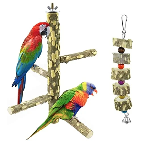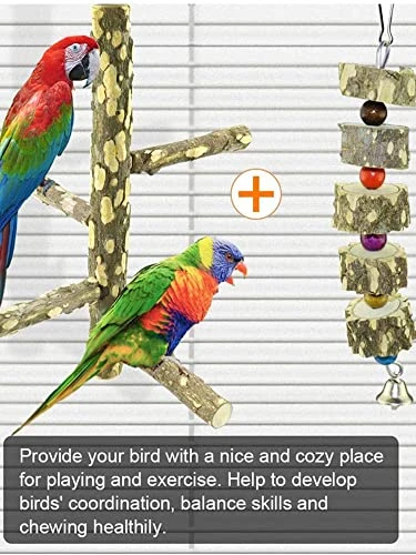 - The package includes wooden hanging chewing toys and wooden bird perches, and all that will make more fun to birds.