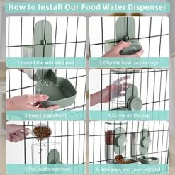 - [Hanging Design]: Hanging the rabbit food dispenser and rabbit water dispenser at a height ,to prevent neck discomfort caused by pets drinking water with their heads up or down. Buttons are designed to fit most small pet cages and fit inside and outside of the cage as needed.