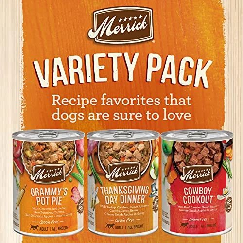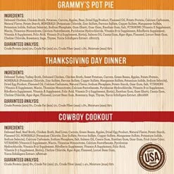 - This natural dog food variety pack features four cans of each of Grammy’s Pot Pie, Thanksgiving Day Dinner, and Cowboy Cookout