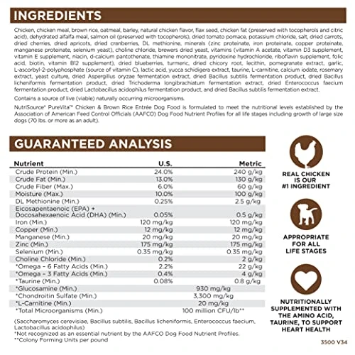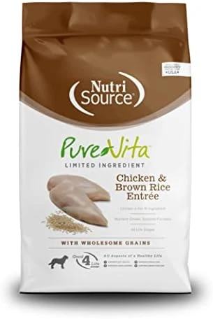 NutriSource Pure Vita Dog Food, Made With Chicken And Brown Rice, With Wholesome Grains, 25LB, Dry Dog Food