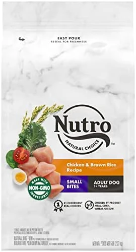 - 13 lb. Bag: Contains one (1) 13 lb. bag of NUTRO NATURAL CHOICE Small Bites Adult Dry Dog Food, Chicken & Brown Rice Recipe Dog Kibble