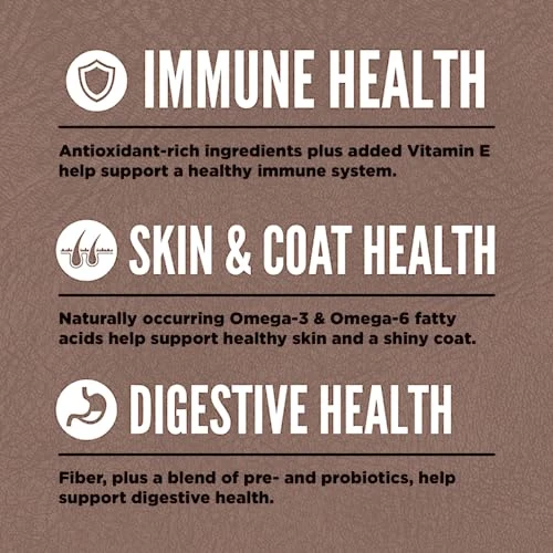 - Grain free* and poultry free dog food made with rich and varied whole animal ingredients to support your dog’s immune function, digestion, skin and coat