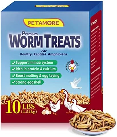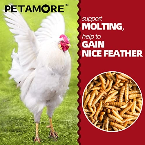- Molting Support – Poultry molting require a huge amount of protein to help regain new feather. Petamore dried meal worms for chickens is of a great supplemental chicken feed treats for that. Besides, the natural worms’ healthy fat would help to shine beautiful feather to make your fowl/poultry look gorgeous!