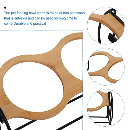 - The pet feeding bowl stand is made of iron and wood that is anti-skid and can be used for long time to come.