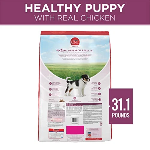 - Purina ONE puppy food made with DHA, a nutrient found in mothers’ milk, to support vision and brain development and four antioxidant sources to support a strong immune system