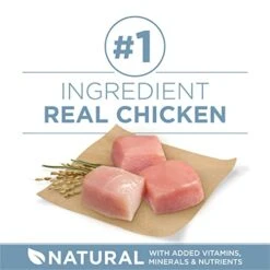 - Real chicken is the first ingredient in this high protein dog food which helps support strong muscles, including a healthy heart