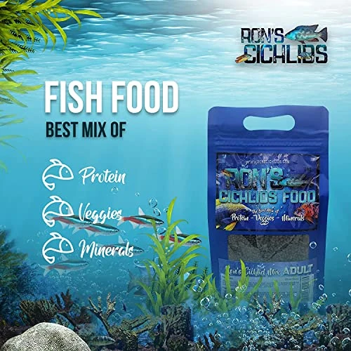 - HEALTHY STRONG FISH AND VIVID COLORS: Our Cichlid pellets have been crafted to provide the optimal nutritional absorption for your fish. The food will bring out bright vibrant colors and develop healthy strong young and full-grown Cichlids.