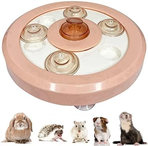 - Cool Design – Non-slip suction cup keep the base in place. With 2 way to tantalize you pets, including a lid that need to be opened, cups that have to be removed. Pets can get food rewards by sliding the lid. This process not only strengthen your pet’s cognitive abilities while keeping your pet busy and redirecting destructive behavior,keeps your small pet’s mind active and alert.