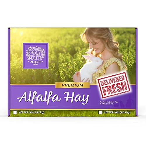 - Minimally Handled & Delivered Fresh – Make it easy to provide exactly what your little friend needs with regular shipments of fresh from the farm hay to wear down growing teeth and protect digestive health. Each delivery of premium alfalfa hay for rabbits, guinea pigs, and chinchillas includes a great mix of protein, fiber and fat to keep them healthy. Your small pet may not thank you with words, but happy oinks and binkies will make you feel like the pet owner of the year.