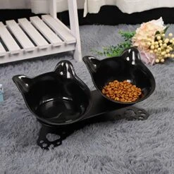 - This set of cat food and water bowl is easy to removable and clean, just simply rinse or wipe bowls, the special design of cat look is also a nice decoration for home.
