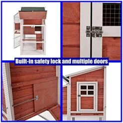 - ✅【Lockable Door & Easy To Clean】— The wooden rabbit cage has 3 lockable doors to prevent accidental escape of poultry and protect them from aggressive animals. The ventilated mesh fence allows you to observe them for better care. There is a removable galvanized pull-out tray at the bottom, which is easy to clean. Through the easy-to-open protective door, you can also easily enter the room to change bedding, food, and perform deep cleaning.