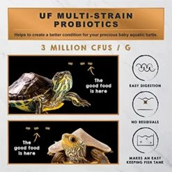- Easy to Intake & Digest : 10 hours of low-temperature processing and enhanced with probiotics, preserving the natural flavors and rich nutritional values. Designed to be rapidly softened, but doesn’t disintegrate and cloud the water. Easy intake for baby aquatic turtles helps with easy digestion and complete absorption of nutrients
