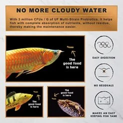 - 3 Million CFUs/g Probiotics : 3 million CFUs/g probiotics are within the food to help dissolve fish excrements, residuals and keeps water clean. Probiotics also increase the feed conversion rate, improve immune system and gut health